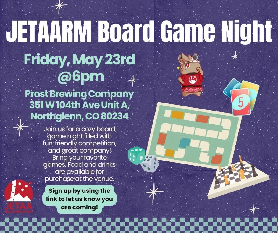 The Japan America Society of Colorado (JASC) - JASC hosts this bi-weekly gathering for native and non-native Japanese speakers to use their language skills in a relaxed space. If you don't use it, you lose it! Don’t miss the two upcoming dates: