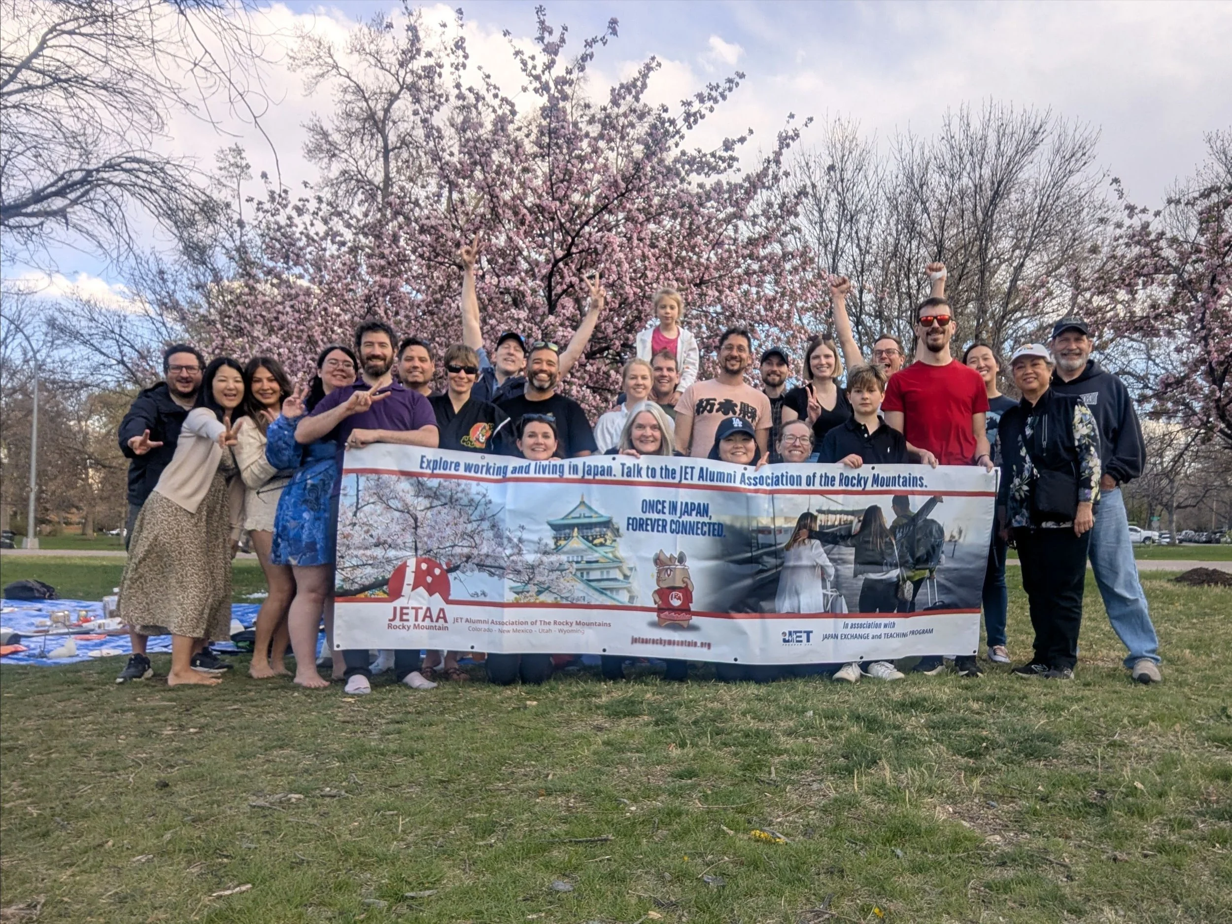 On April 24 we gathered in City Park just in time to catch some of the beautiful sakura blossoms. We had over 30 members from the JET alum and broader community join us for a potluck picnic filled with conversation, connection, laughter, music, and games! The party went from 6 pm right up till the sunset. What a magical afternoon!